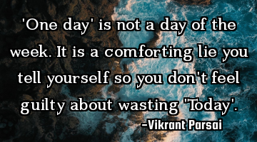 'One day' is not a day of the week. It is a comforting lie you tell yourself so you don't feel..