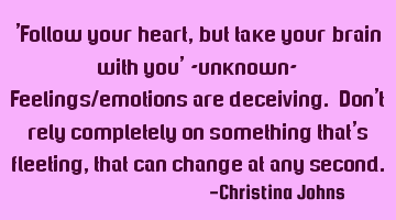 'Follow your heart, but take your brain with you' -unknown- Feelings/emotions are deceiving. Don't..