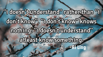 ''i doesn't understand'' rather than ''i don't know''. ''i don't know'' knows nothing. ''i doesn't..