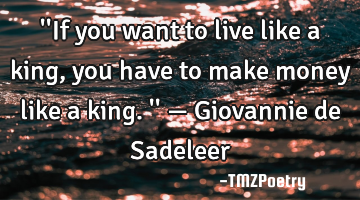''If you want to live like a king, you have to make money like a king.'' β Giovannie de Sadeleer..