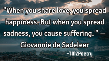 ''When you share love, you spread happiness. But when you spread sadness, you cause suffering.'' β..