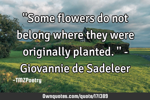 ''Some flowers do not belong where they were originally planted.'' - Giovannie de Sadeleer -TMZPoetry