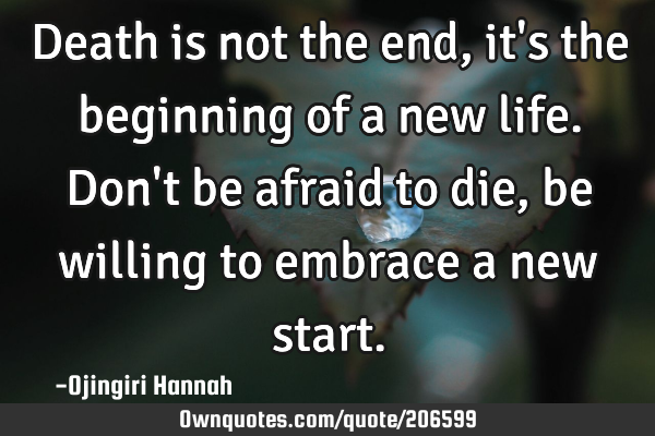 Death is not the end, it's the beginning of a new life. Don't be afraid to die, be willing to embrace a new start. -ojingiri hannah