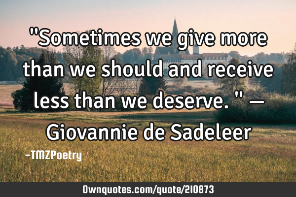 ''Sometimes we give more than we should and receive less than we deserve.'' — Giovannie de Sadeleer -TMZPoetry