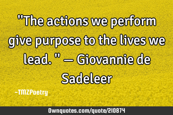 ''The actions we perform give purpose to the lives we lead.'' — Giovannie de Sadeleer -TMZPoetry