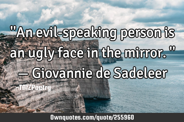 ''An evil-speaking person is an ugly face in the mirror.'' — Giovannie de Sadeleer -TMZPoetry
