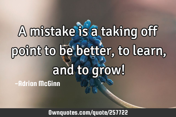 A mistake is a taking off point to be better, to learn, and to grow! -Adrian McGinn