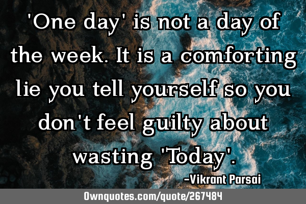 'One day' is not a day of the week. It is a comforting lie you tell yourself so you don't feel guilty about wasting 'Today'. -Vikrant Parsai
